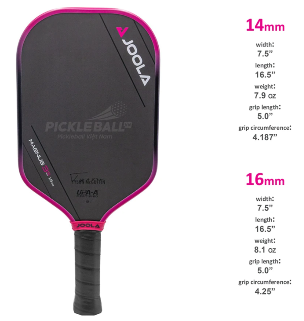 Vợt pickleball Joola Tyson Mcguffin 16mm Joola Gen 3S đã được UPA chứng nhận cho tất cả các giải đấu trên toàn thế giới, sản phẩm được phân phối bởi Pickleball Việt Nam